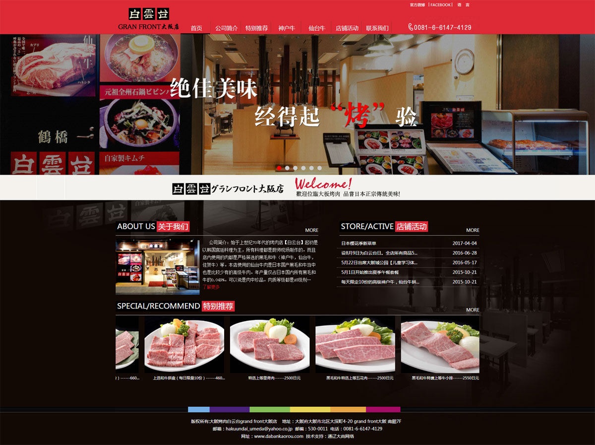 2013年在大阪最大的繁華街,與大阪站相連的grand front大阪開出第三家店。在這個繁華街里除了全國連鎖店以外的商家是很難入駐的。我們的店是唯一一個沒有全國連鎖店的一家店鋪。當(dāng)初是由全國50多家店鋪當(dāng)中進(jìn)行嚴(yán)格篩選,最終因我們的服務(wù)及料理的味道獲得認(rèn)可,才得以入住這條繁華街。